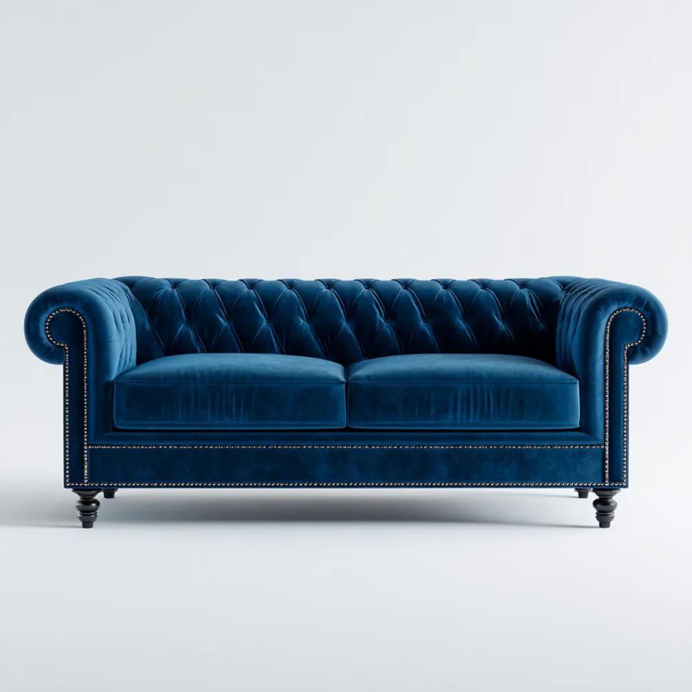 Matériau et Finition:Fabriqué en velours de haute qualité, ce canapé est proposé dans une teinte Bleue profonde qui s'accorde parfaitement avec de nombreux styles de décoration.