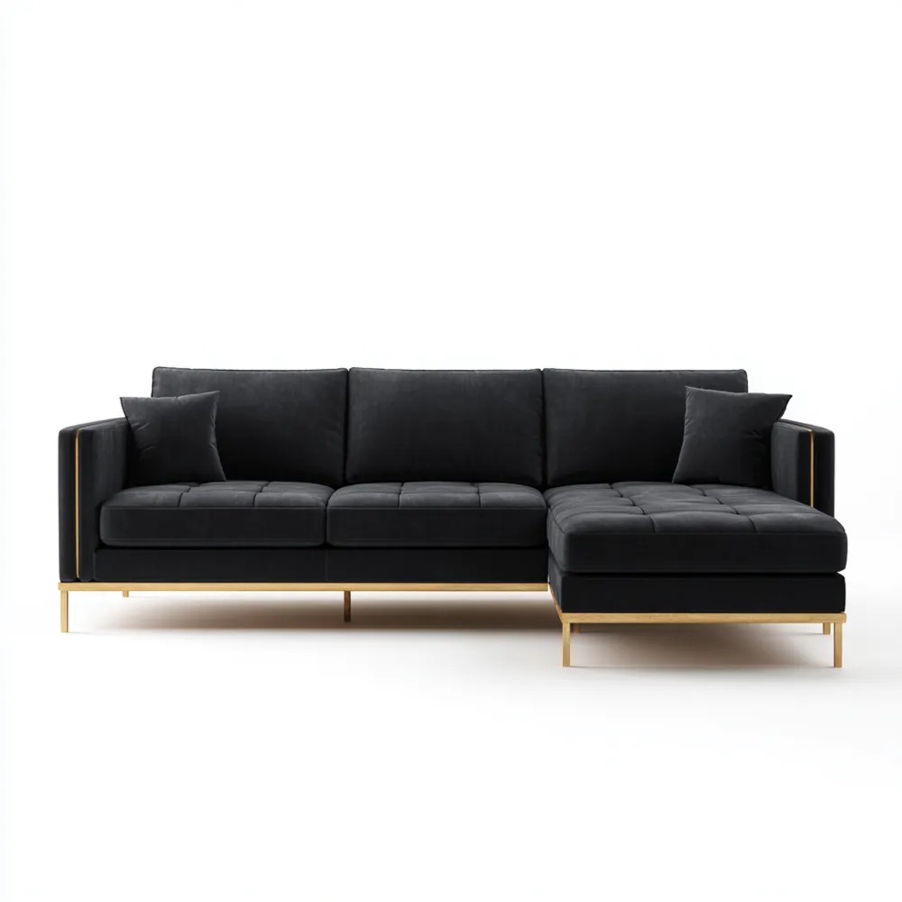 Présentation du produitDécouvrez ce magnifique canapé d'angle en tissu noir, parfait pour ajouter une touche élégante et moderne à votre salon.